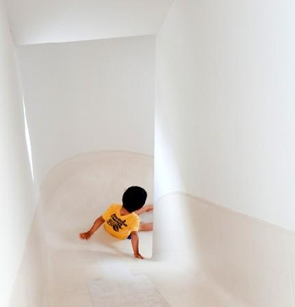 Japans architectenbureau Level Architects heeft een huis in Nakameguro, bij Tokyo voltooid, waarin de drie verdiepingen door een glijbaan met elkaar verbonden worden.Een traphal slingert zichzelf rond één kant van het huis, terwijl de glijbaan rond de andere kant cirkelt. De bewoners kunnen op iedere verdieping beslissen of ze dan wel met de trap, dan wel met de glijbaan naar beneden willen.